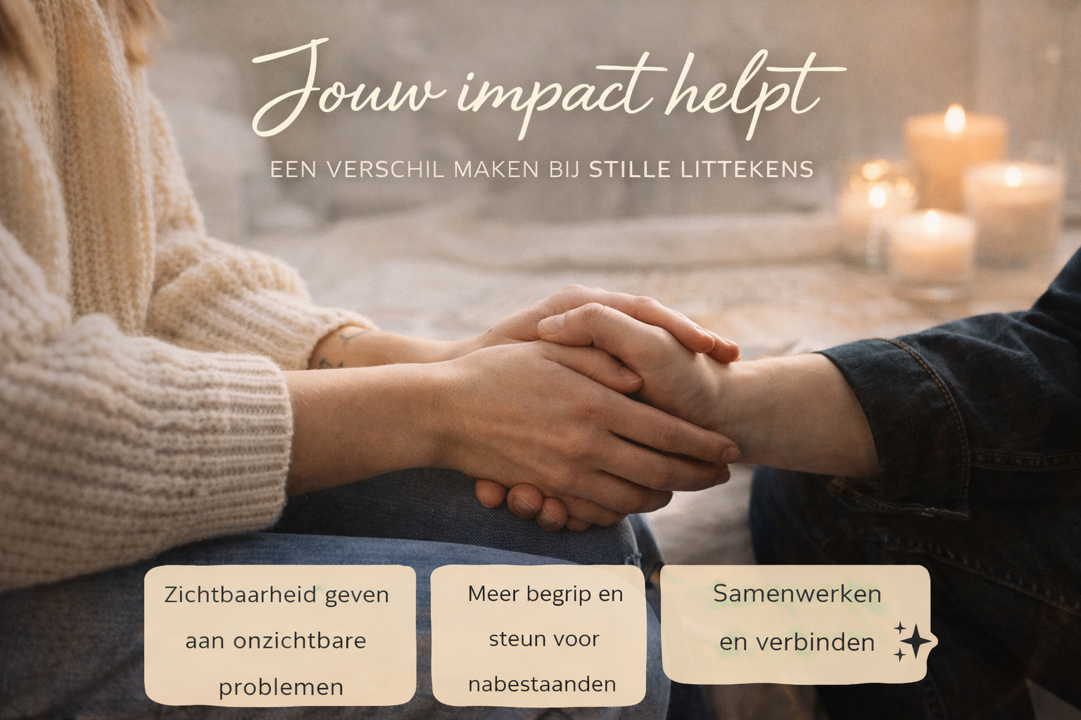 Voor Stille Littekens zoeken we verbinding met mensen en organisaties die onze boodschap kunnen versterken en helpen om het verhaal verder te brengen. Onze focus ligt op partners die oprecht betrokken zijn bij het thema en de film naar een breder publiek kunnen tillen.